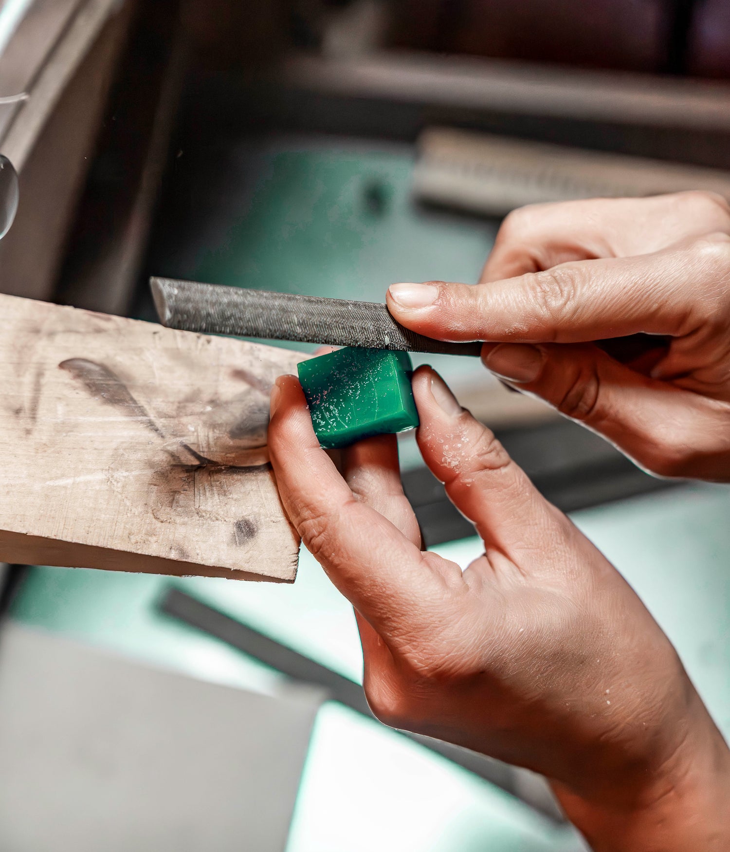 Le cere vengono modellate, i metalli fusi, le superfici cesellate fino a rivelare l’anima del gioiello.