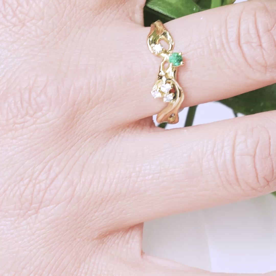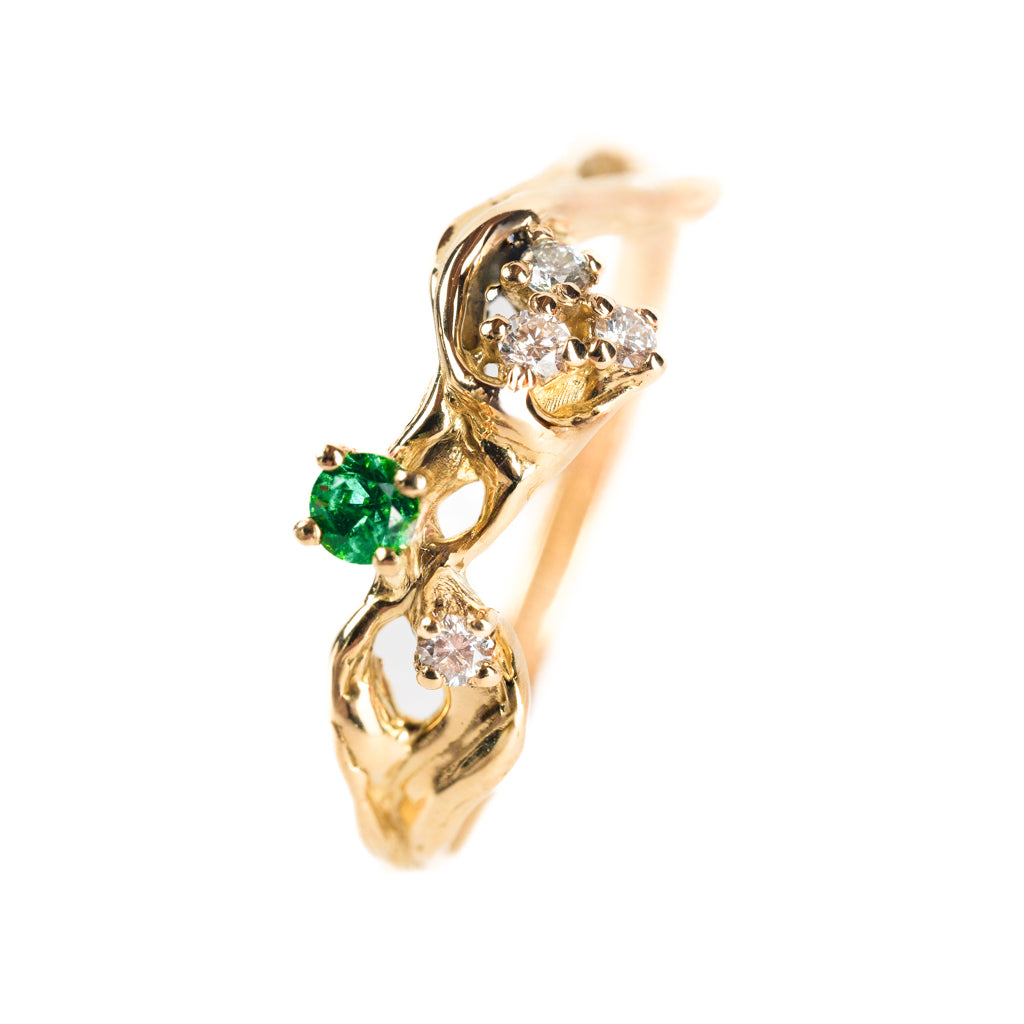 Realizzato in oro 750, impreziosito con uno Smeraldo naturale centrale e con Diamanti naturali.